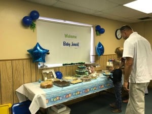 My church ladies were also determined to have some sort of party for my second son, even though we did not need much after having one boy already!  So, a couple weeks after Joash was born, the church threw a Welcome Fellowship for him, complete with finger foods, gifts, and more gluten-free goodies for Mama :)